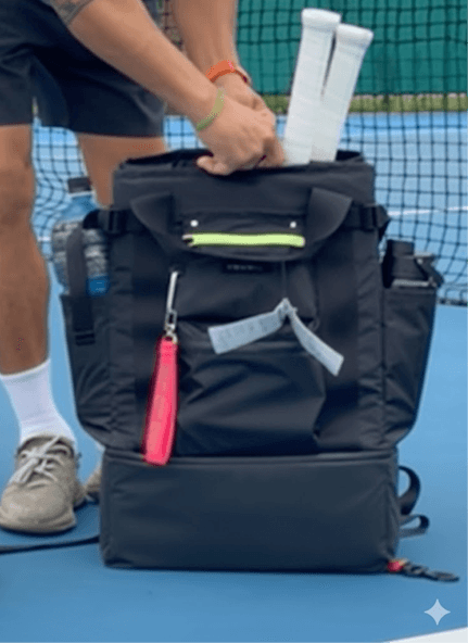 테니스 개나리대회 나갈 때마다 백팩, 간식 보냉 가방, 신발주머니까지 챙기느라 손이 모자랐는데… 이 가방 하나로 모든 번거로움이 싹 해결됐습니다! 👏 맨 아랫칸은 신발·간식·여벌 옷 등 원하는 대로 활용하면 만족하실 만한 가방이에요. 🎾💼